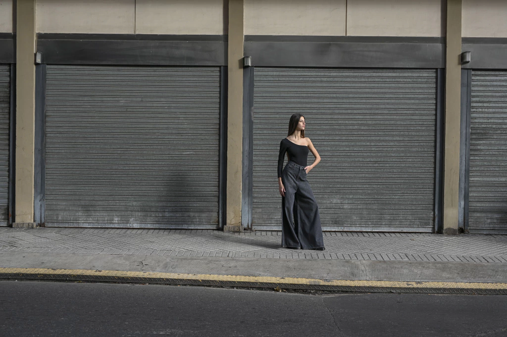 Jean extra wide tiro medio alto. Lona black lavado gris. Tiene pinzas delante y bolsillos grandes.